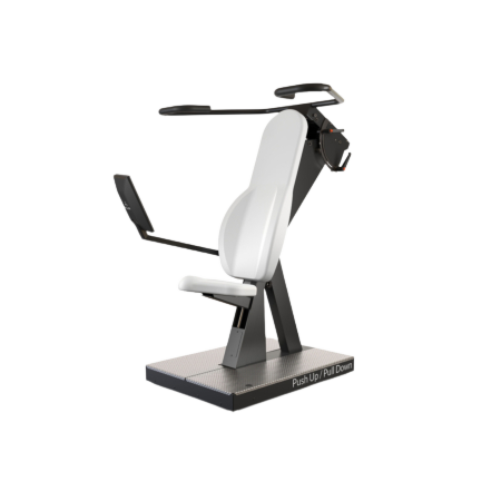 HUR Push Up / Pull Down Rehab er til målrettet træning af skulder- og rygmuskler. Maskinerne genererer modstand ved hjælp af en kompressor. Denne købes separat. Kontakt os, så vi kan hjælpe med at finde den rette kombination af maskiner og evt. tilbehør” for råd og vejledning