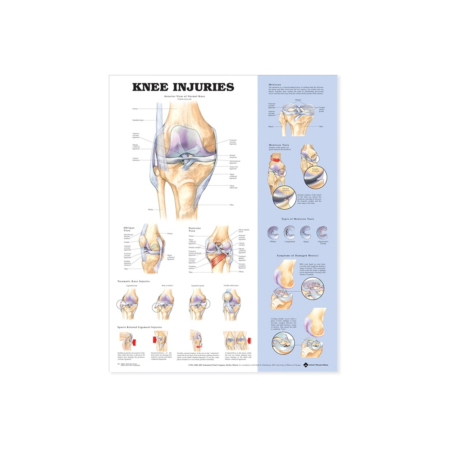 Med dens klare og detaljerede illustrationer kan plakaten hjælpe sundhedsprofessionelle med at forklare og vise patienter de forskellige typer af knæskader og deres relaterede symptomer. Plakaten er også en god ressource til at lære om forebyggelse af knæskader og behandling af knæproblemer.